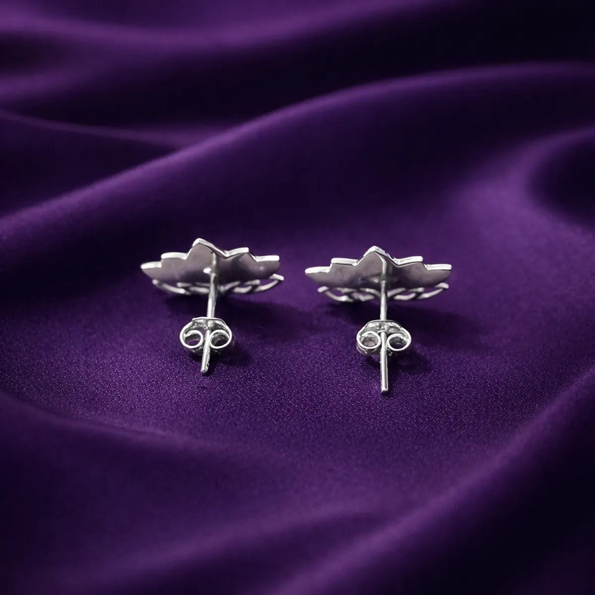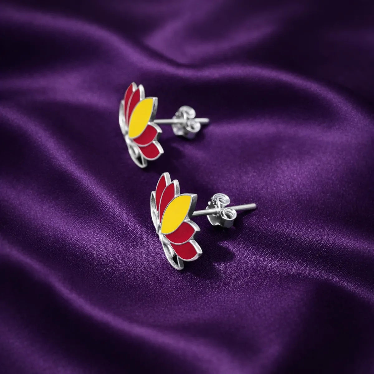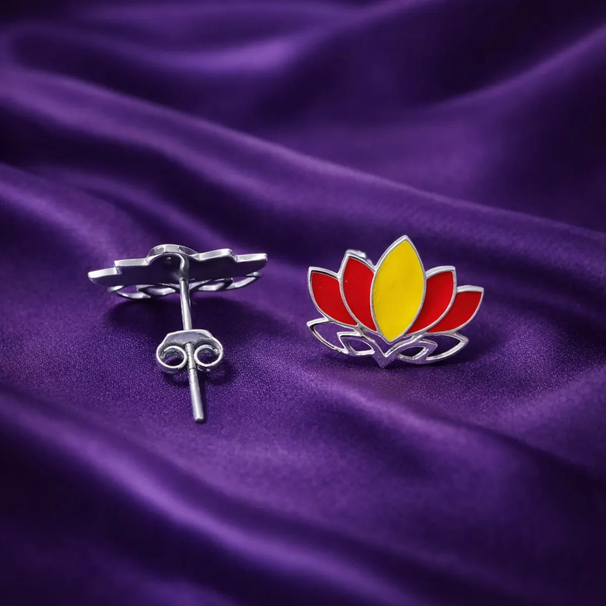 Lotus Flower Meenakari Enamel Silver Stud Earrings Traditional Folk Art