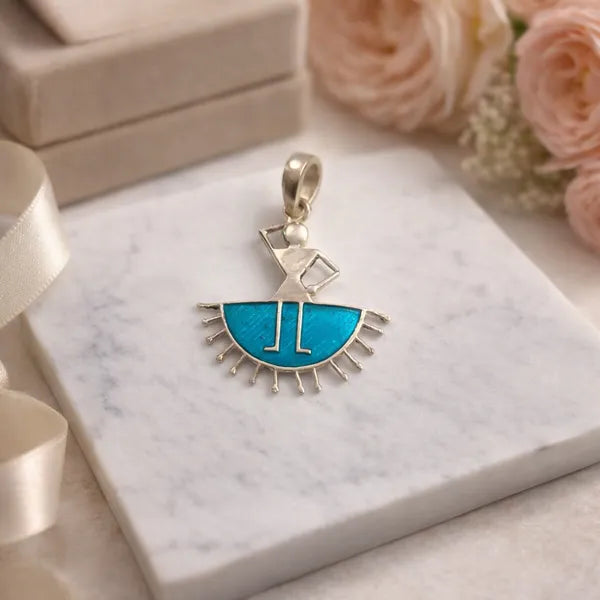 - This Silver Pendant Features A Beautiful Indian Folk Art Girl Design