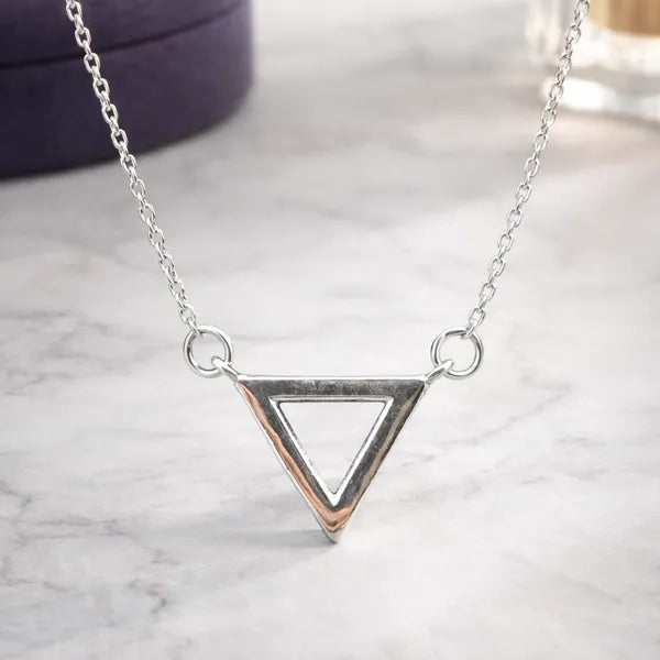 - This Triangle Shape Necklace Features A Clean And Simple Pendant With A Modern Look