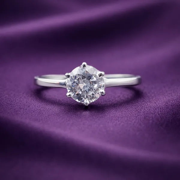 - This Solitaire Ring Features A Clean Round Stone Set In A Neat Prong Setting With A Smooth And Simple Band